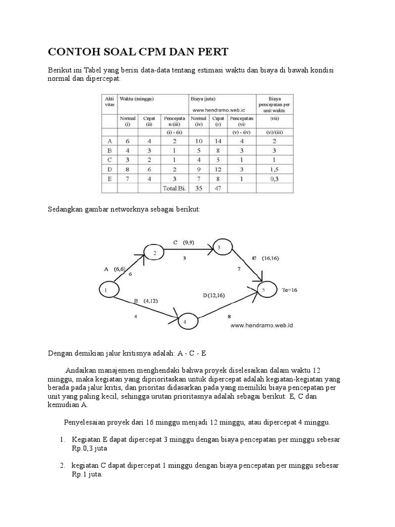 Contoh Soal Manajemen Proyek Cpm Dan Pert Contoh Soal Terbaru