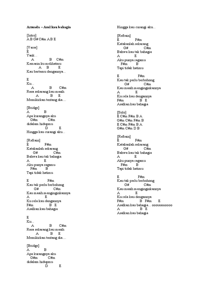 Intro G Verse 1 C D mungkin ini saatnya Bm Em kini kita sudahi semua Am D walau berat hatiku G untuk melepasmu C D dan bila esok hari-hariku Bm E tak seindah kemarin Am D akan ku biasakan G walau tanpa dirimu Intro G D Em D C G Am D Verse 2 G D saat kita tak bisa lagi Em D untuk bersama C G ku coba tuk terima Am D perlahan rasa sakitnya. We recognize that excellent music is hard to come by so were seeking to assist. Am C G Dm Am C G Dm Am C G DmSudah terlalu lama aku mencintaimu Am C.