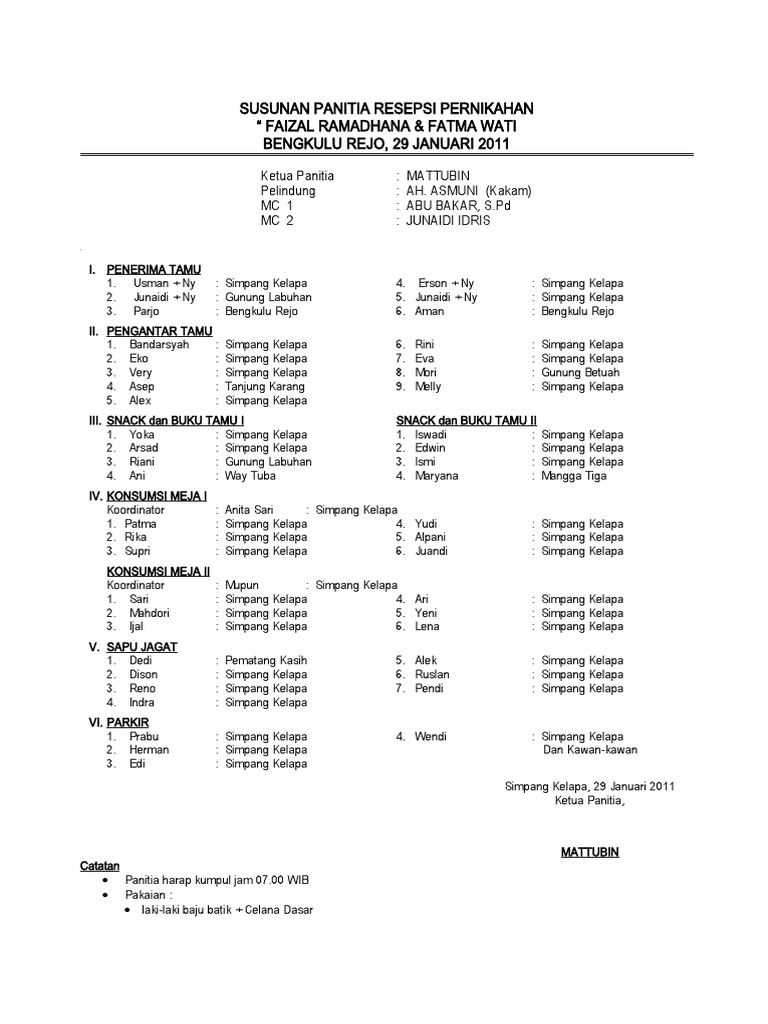 Contoh Susunan Panitia Resepsi Pernikahan Pdf Document