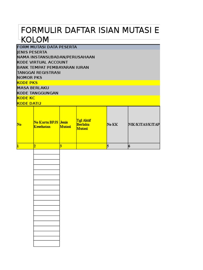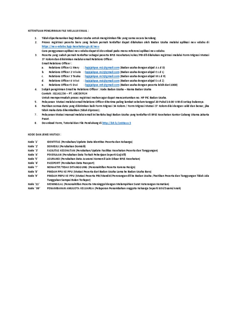 1 Format 37 k KODE MUTASI2 kolom ini untuk update data badan usaha Jenis Mutasi Diisi dengan angka berikut. Untuk melakukan perubahan faskes dapat langsung ke kantor BPJS dengan membawa. If you continue browsing the site you agree to the use of cookies on this website.