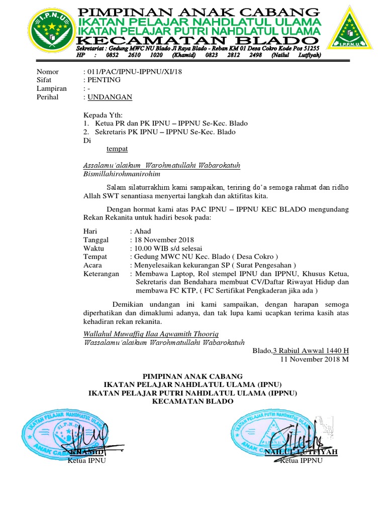 Contoh Surat Delegasi Ipnu Ippnu Macarenn