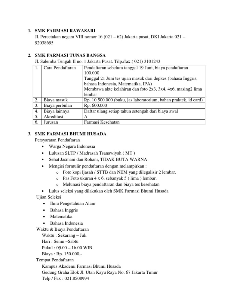 Contoh Soal Tes Masuk Smk Jurusan Farmasi