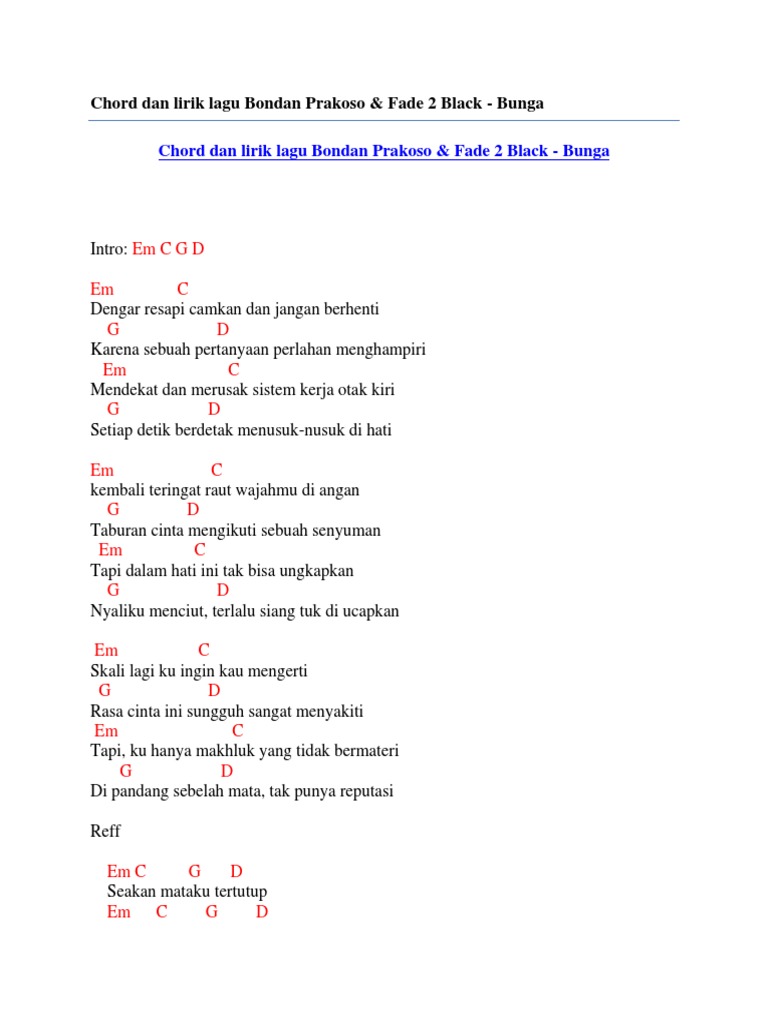 Chord Jpeg Lirik Chord Bondan Prakoso Fade 2 Black Bunga