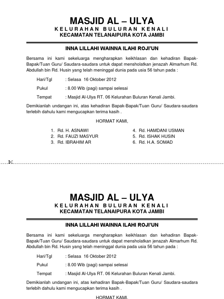Undangan sholat jenazah doc photo outcomes. Undangan sholat jenazah kematian meninggal dunia.